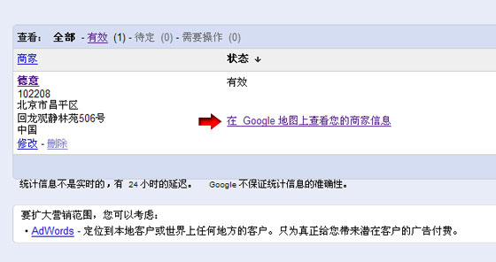 點(diǎn)擊下圖中紅色箭頭指示的“在 Google 地圖上查看您的商家信息” 鏈接。